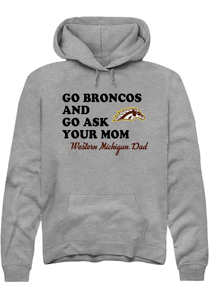 Put your Broncos spirit on display in this Western Michigan Broncos Long Sleeve Hoodie! You'll be cozy on game day in this WMU Broncos Mens Graphite Go Ask Your Mom Hooded Sweatshirt. This Broncos Long Sleeve Hoodie features a team graphic. Wear your Western Michigan Broncos spirit with pride in this great Mens Hooded Sweatshirt!