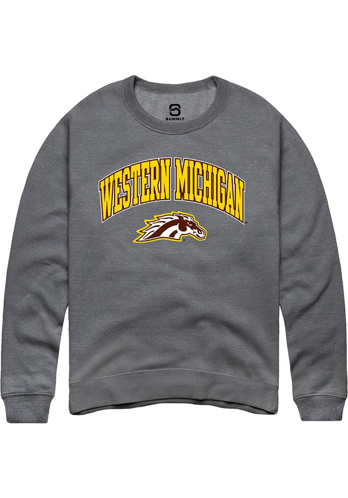 Western Michigan Broncos Mens Grey Arch Logo Long Sleeve Crew Sweatshirt