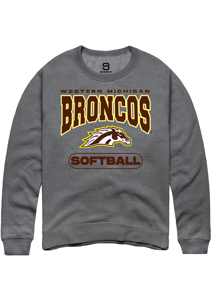 Western Michigan Broncos Mens Grey Softball Long Sleeve Crew Sweatshirt