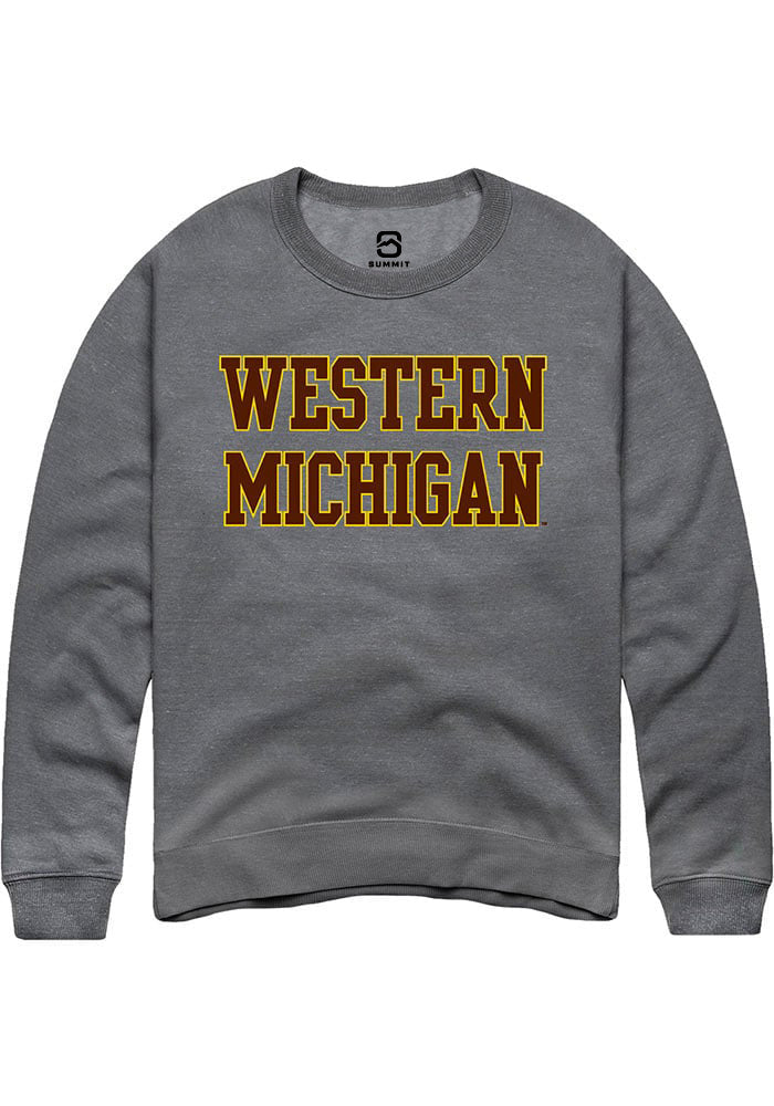 Western Michigan Broncos Mens Grey Straight Block Long Sleeve Crew Sweatshirt