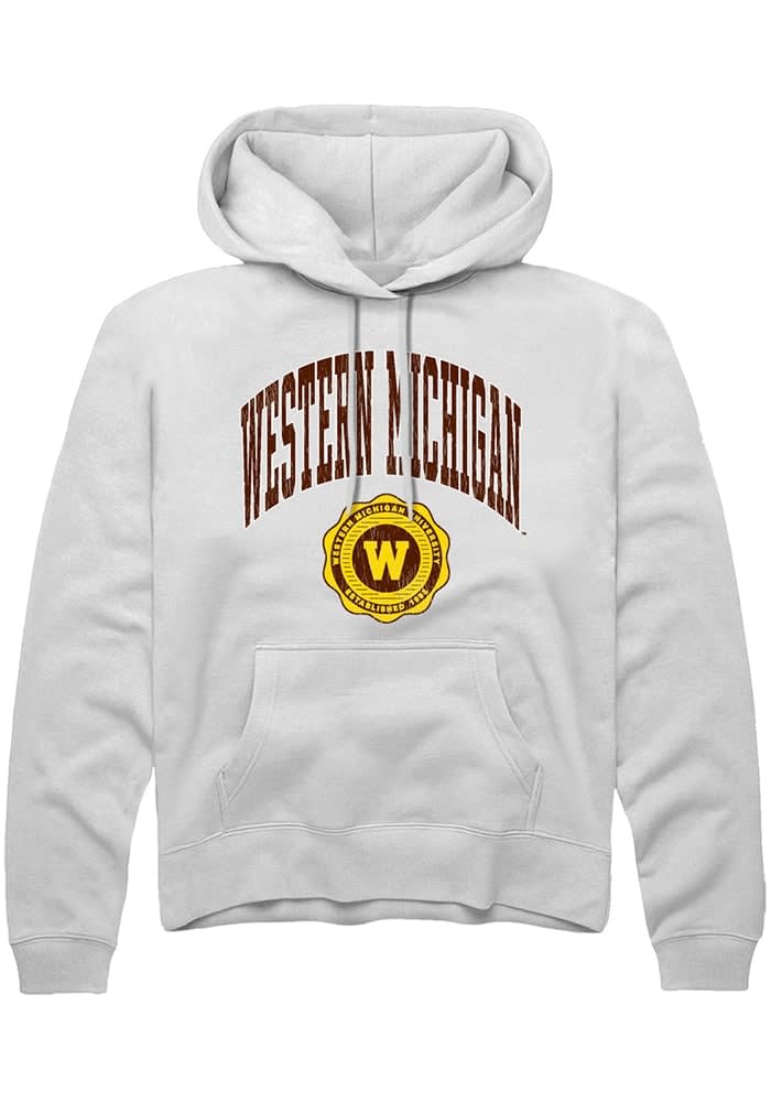 Western Michigan Broncos Mens White Arch Seal Long Sleeve Hoodie