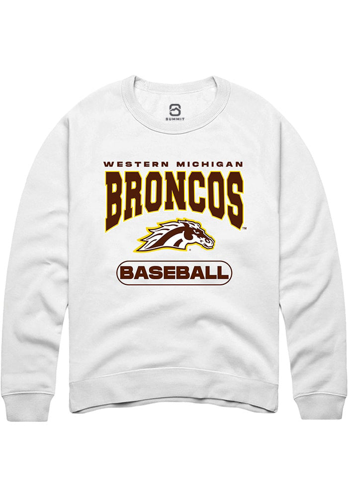 Western Michigan Broncos Mens White Baseball Long Sleeve Crew Sweatshirt