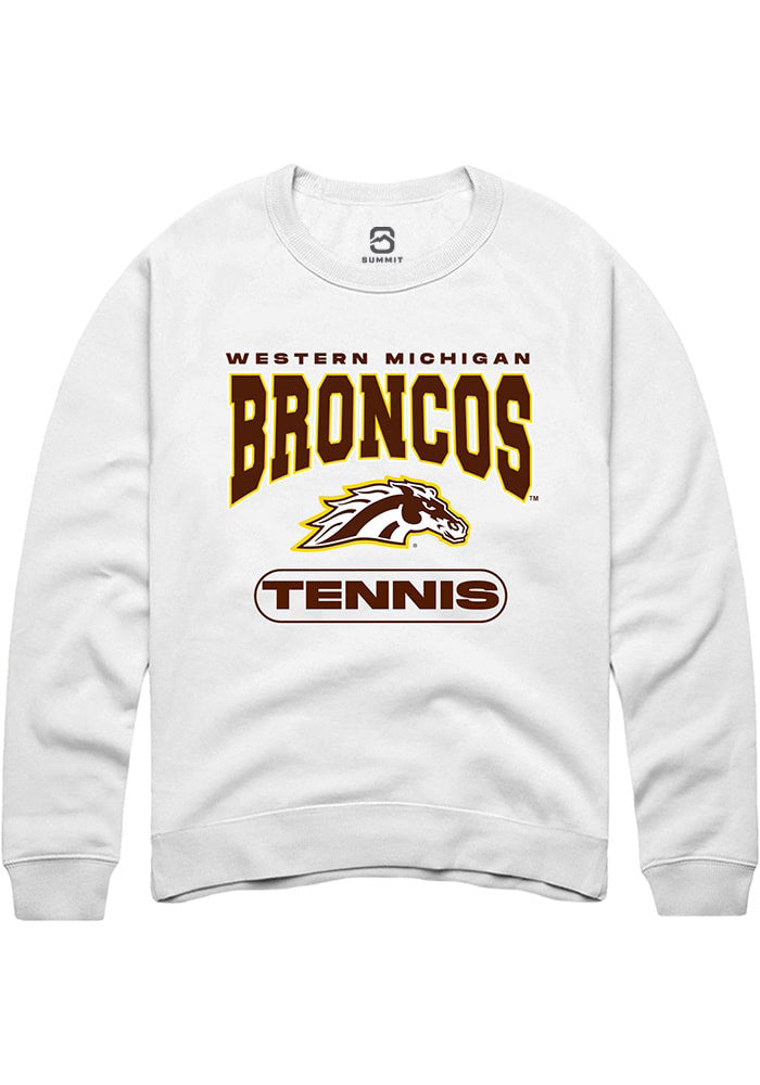 Western Michigan Broncos Mens White Tennis Long Sleeve Crew Sweatshirt