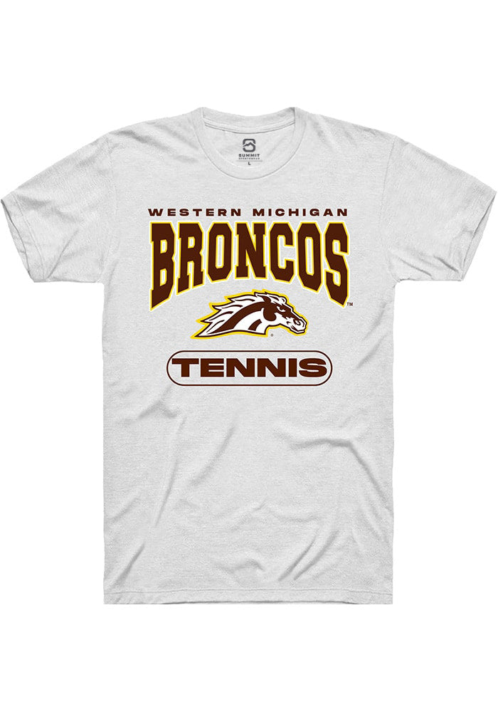 Show off your team pride in this Western Michigan Broncos White Tennis Short Sleeve T Shirt! This WMU Broncos Short Sleeve Tee features a digitally printed graphic. Make sure everyone knows you root for the Broncos with this White WMU Broncos T Shirt. Go Broncos!