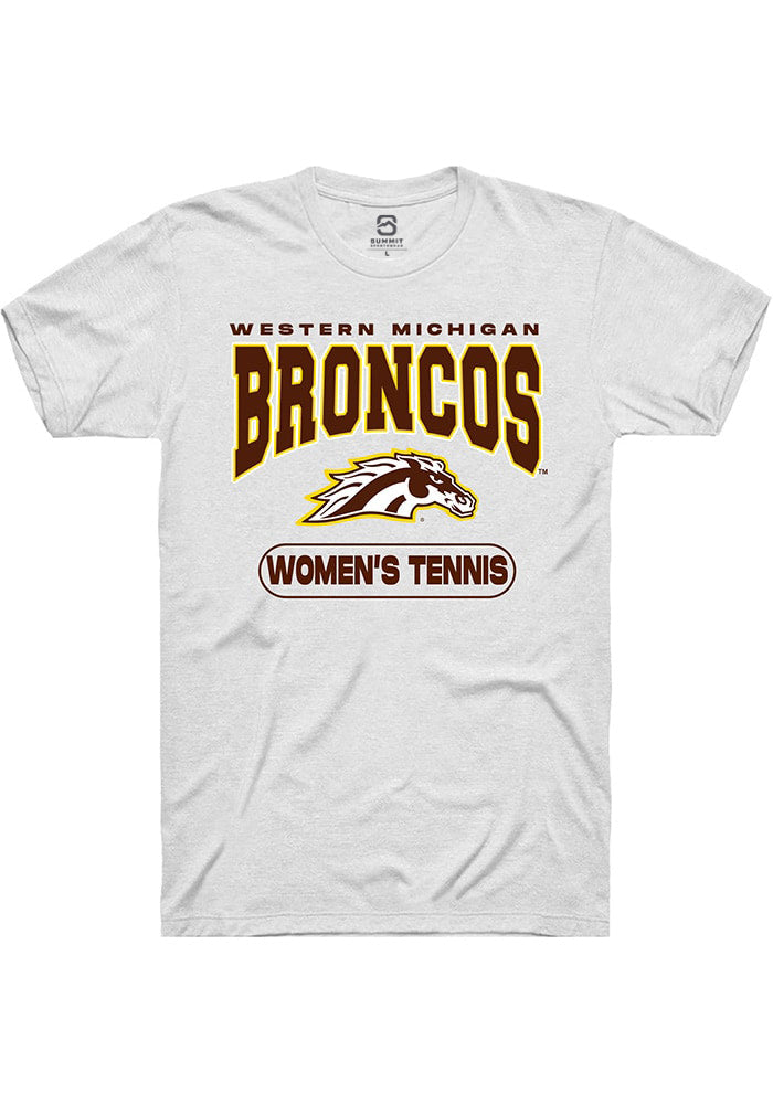 Show off your team pride in this Western Michigan Broncos White Womens Tennis Short Sleeve T Shirt! This WMU Broncos Short Sleeve Tee features a digitally printed graphic. Make sure everyone knows you root for the Broncos with this White WMU Broncos T Shirt. Go Broncos!