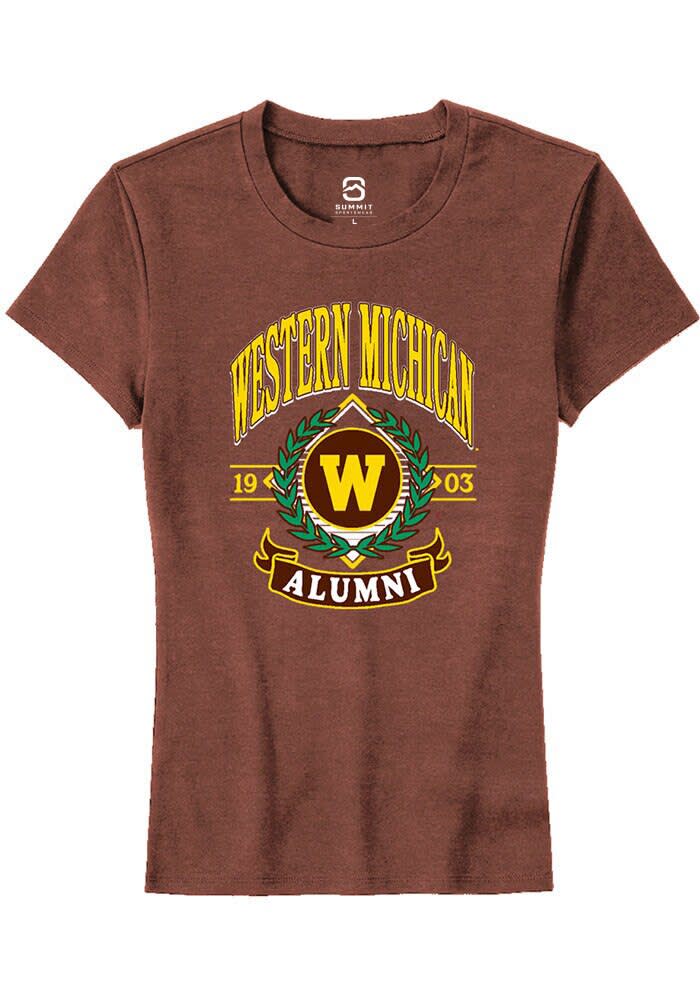 Western Michigan Broncos Womens Brown Alumni Wreath Short Sleeve T-Shirt