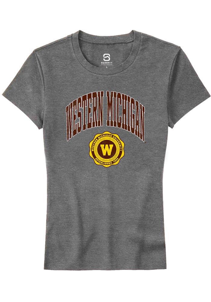 Western Michigan Broncos Womens Grey Arch Seal Short Sleeve T-Shirt