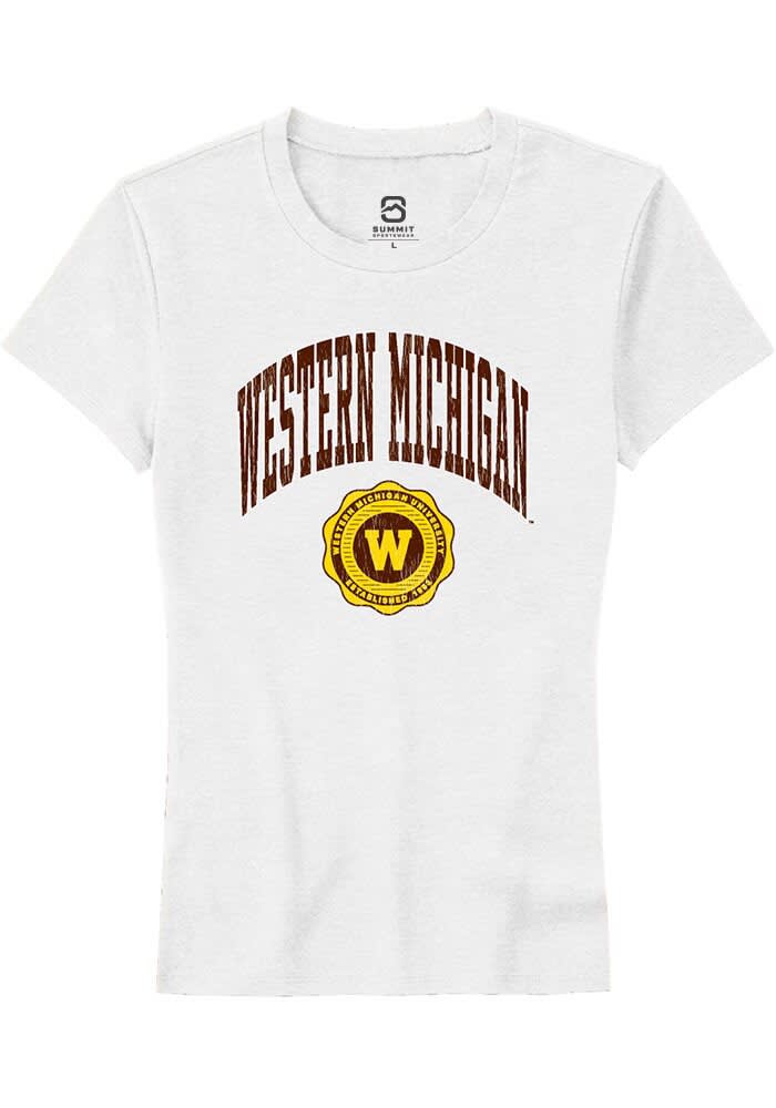 Western Michigan Broncos Womens White Arch Seal Short Sleeve T-Shirt