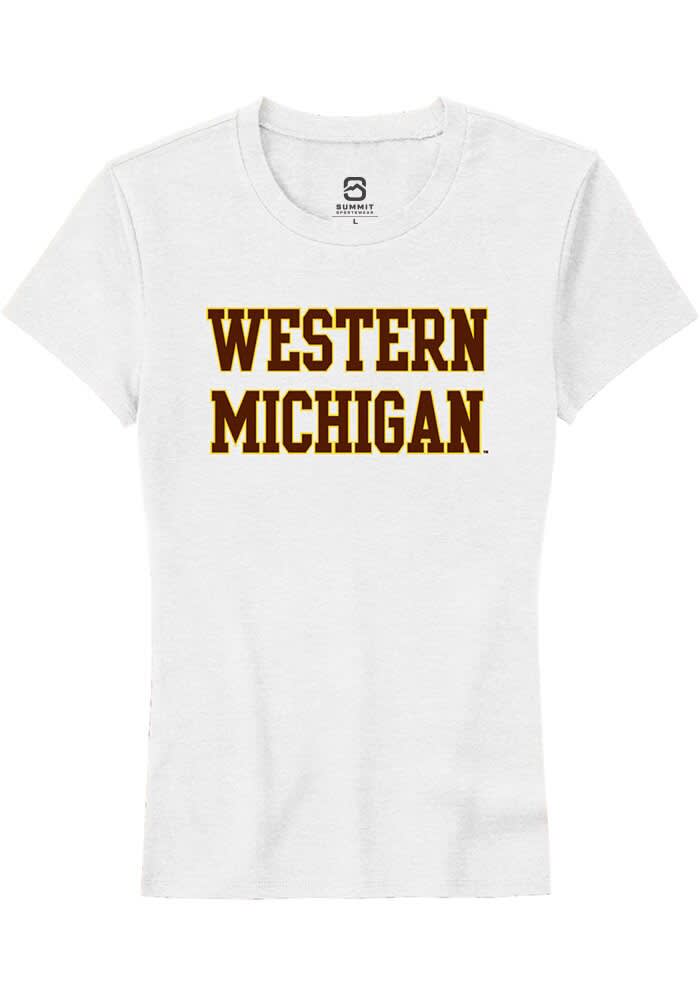 Western Michigan Broncos Womens White Straight Block Short Sleeve T-Shirt
