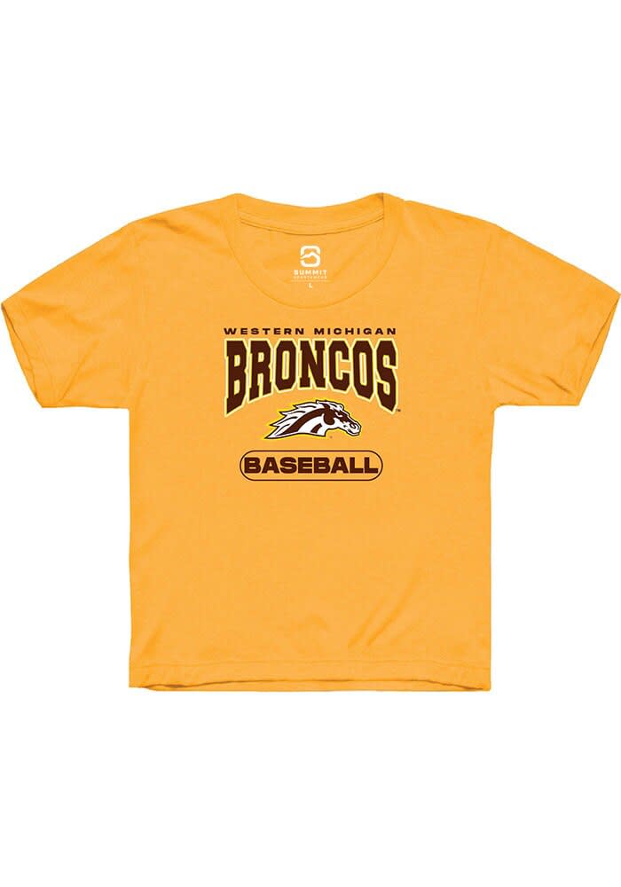Your future Western Michigan Broncos will be ready for the game with this Western Michigan Broncos Youth Gold Short Sleeve Tee. This Baseball T-Shirt features a digitally printed graphic.