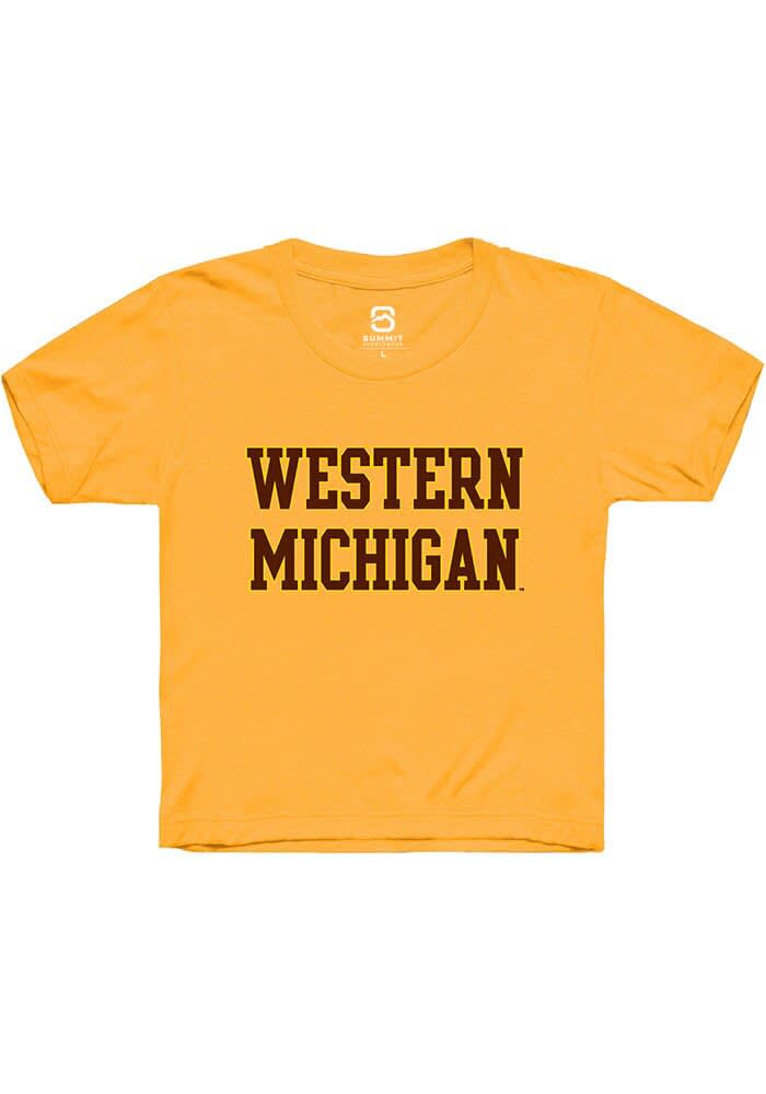 Your future Western Michigan Broncos will be ready for the game with this Western Michigan Broncos Youth Gold Short Sleeve Tee. This Straight Block T-Shirt features a digitally printed graphic.