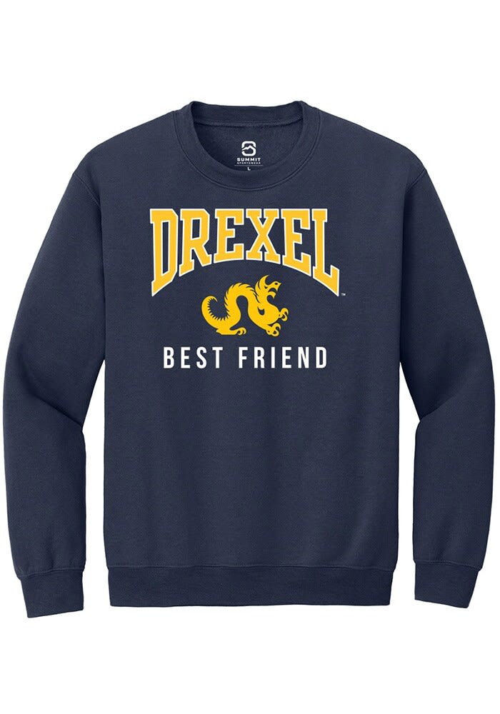 Drexel Dragons Mens Navy Blue Best Friend Long Sleeve Crew Sweatshirt