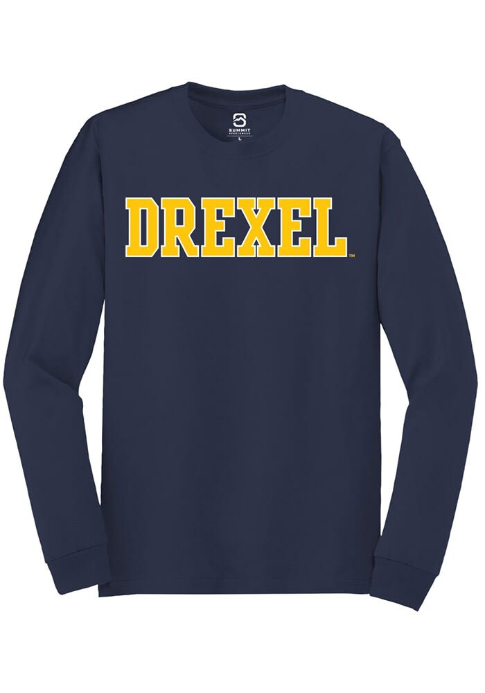 Drexel Dragons Navy Blue Straight Block Long Sleeve T Shirt