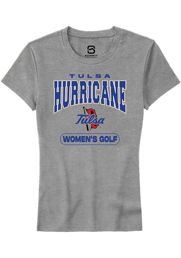 Let everyone know who you root for in this Tulsa Golden Hurricane Grey Women's Golf Short Sleeve T-Shirt! This Tulsa Short Sleeve Tee features a digitally printed graphic.