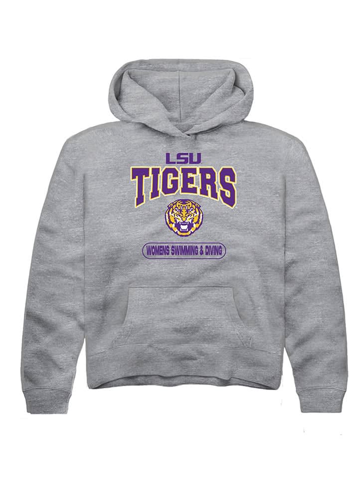LSU Tigers Youth Grey Womens Swimming & Diving Long Sleeve Hoodie