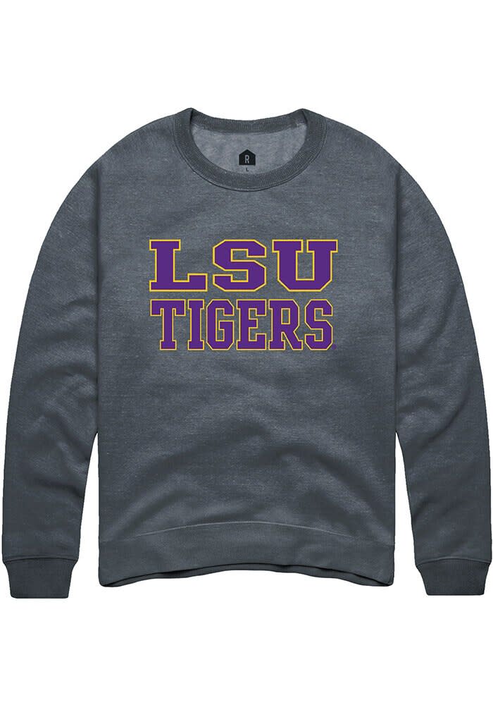 LSU Tigers Mens Charcoal Straight Block Long Sleeve Crew Sweatshirt