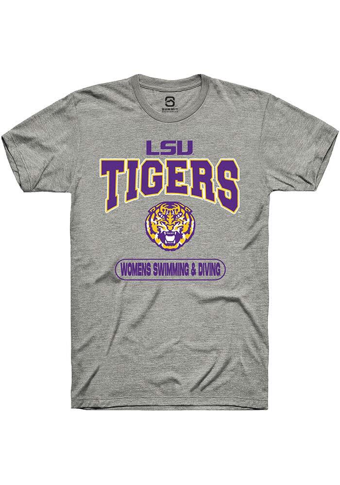 Show off your team pride in this LSU Tigers Grey Womens Swimming & Diving Short Sleeve T Shirt! This LSU Short Sleeve Tee features a digitally printed graphic. Make sure everyone knows you root for the Tigers with this Grey LSU T Shirt. Fight, Tigers!