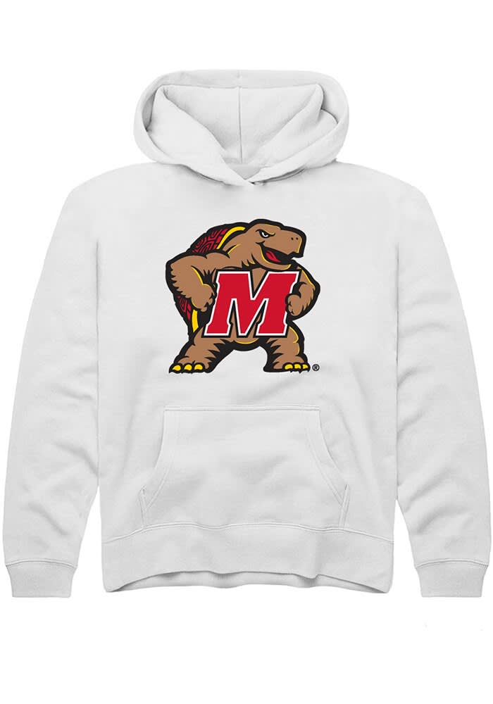 Those cold nights at the game won't keep your little Maryland fan from cheering on the team in Maryland Terrapins Long Sleeve Hoodie! Give them this Maryland Terrapins Youth White Alt Logo Hooded Sweatshirt to keep warm in the stands. This Terrapins Long Sleeve Hoodie features a digitally printed graphic.