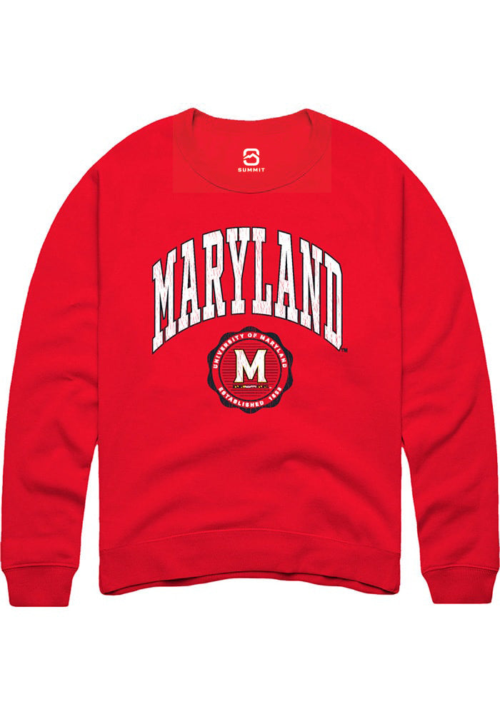 Maryland Terrapins Mens Red Arch Seal Long Sleeve Crew Sweatshirt
