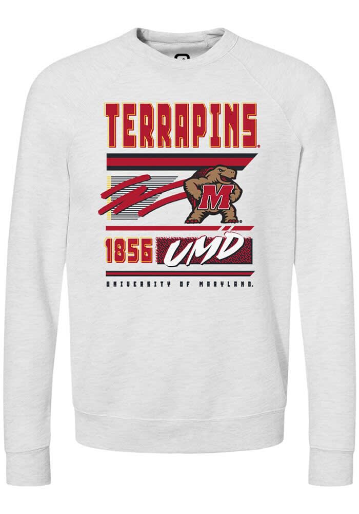 Maryland Terrapins Mens Ash Retro Long Sleeve Crew Sweatshirt