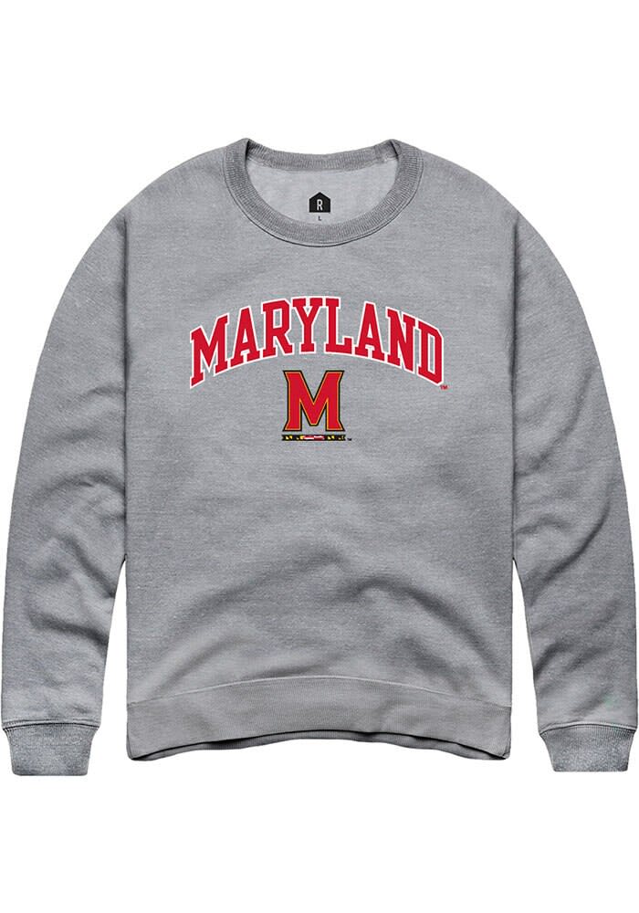 Maryland Terrapins Mens Grey Arch Logo Long Sleeve Crew Sweatshirt