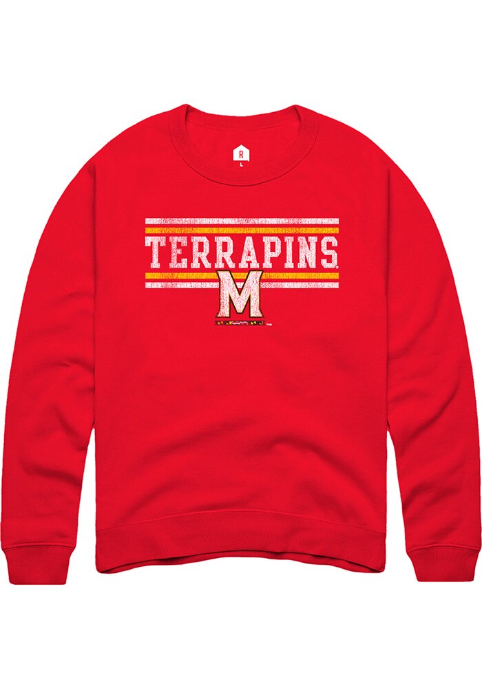 Maryland Terrapins Mens Red Chant Bars Long Sleeve Crew Sweatshirt