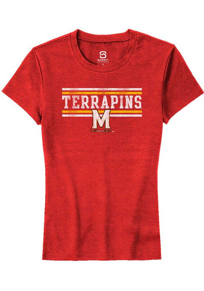 Maryland Terrapins Womens Red Chant Bars Short Sleeve T-Shirt