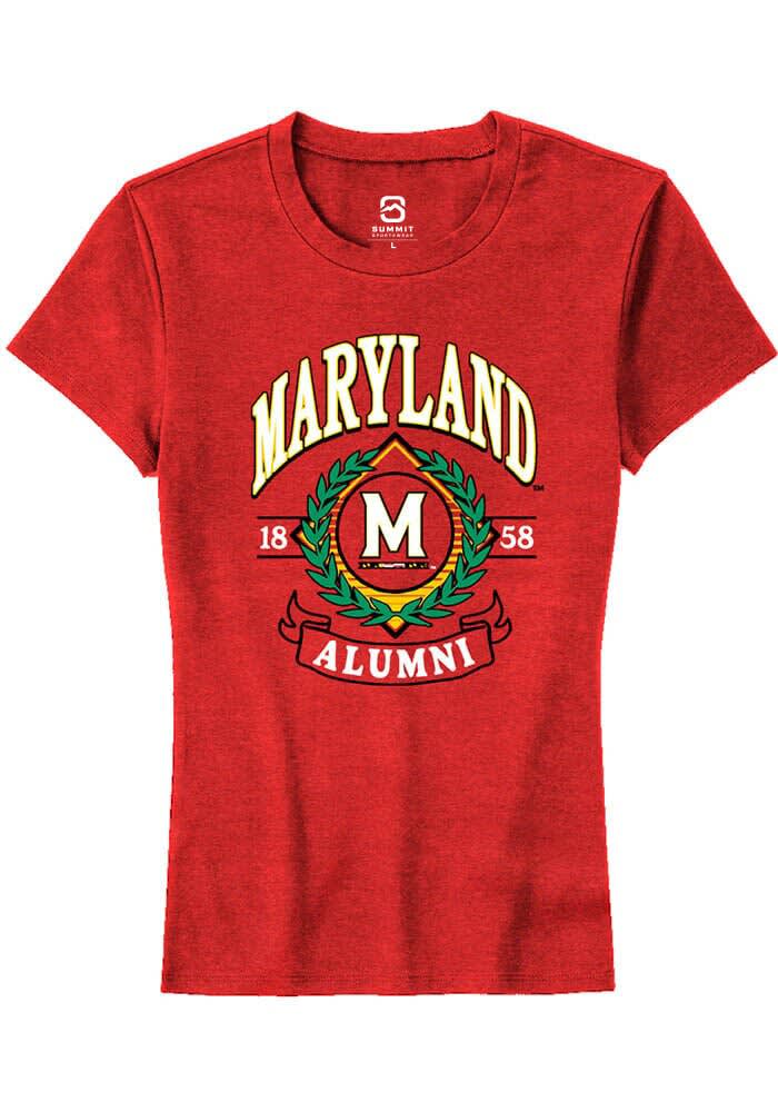 Maryland Terrapins Womens Red Alumni Wreath Short Sleeve T-Shirt