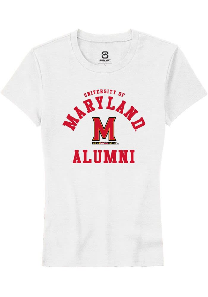 Maryland Terrapins Womens White Alumni Arch Short Sleeve T-Shirt