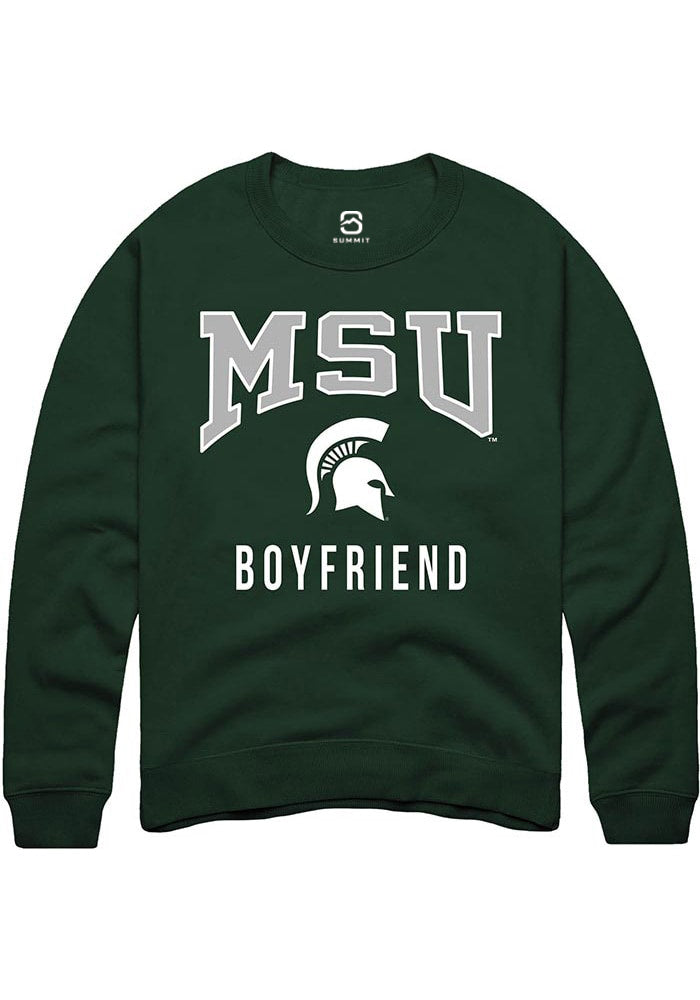 Michigan State Spartans Mens Green Boyfriend Long Sleeve Crew Sweatshirt