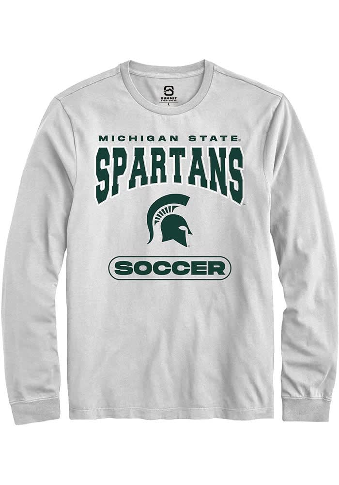 Show off your team pride in this Michigan State Spartans White Soccer Long Sleeve T Shirt! This MSU Long Sleeve Tee features a digitally printed graphic. Make sure everyone knows you root for the Spartans with this White MSU T Shirt. Go Spartans!