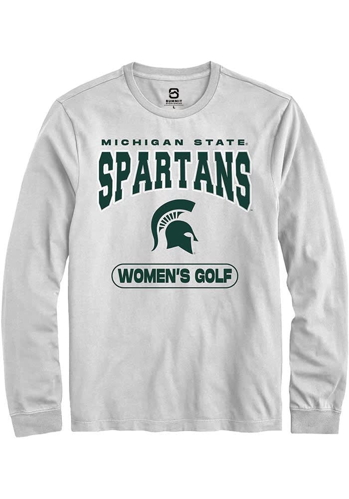 Show off your team pride in this Michigan State Spartans White Women's Golf Long Sleeve T Shirt! This MSU Long Sleeve Tee features a digitally printed graphic. Make sure everyone knows you root for the Spartans with this White MSU T Shirt. Go Spartans!