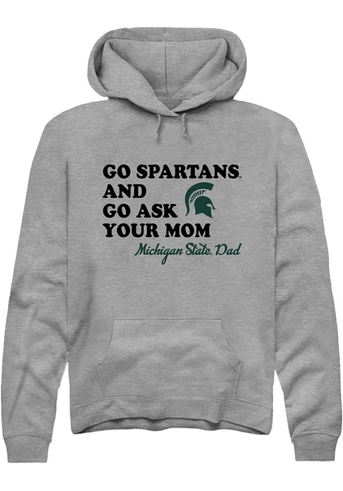 Put your Spartans spirit on display in this Michigan State Spartans Long Sleeve Hoodie! You'll be cozy on game day in this MSU Mens Graphite Go Ask Your Mom Hooded Sweatshirt. This Spartans Long Sleeve Hoodie features a team graphic. Wear your Michigan State Spartans spirit with pride in this great Mens Hooded Sweatshirt!