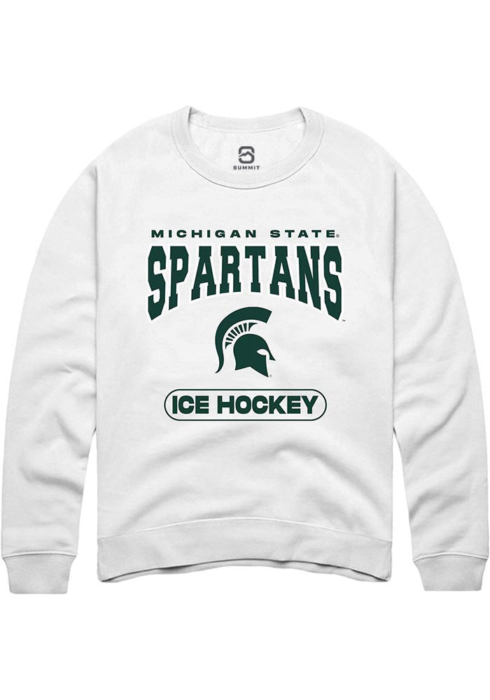 Michigan State Spartans Mens White Ice Hockey Long Sleeve Crew Sweatshirt