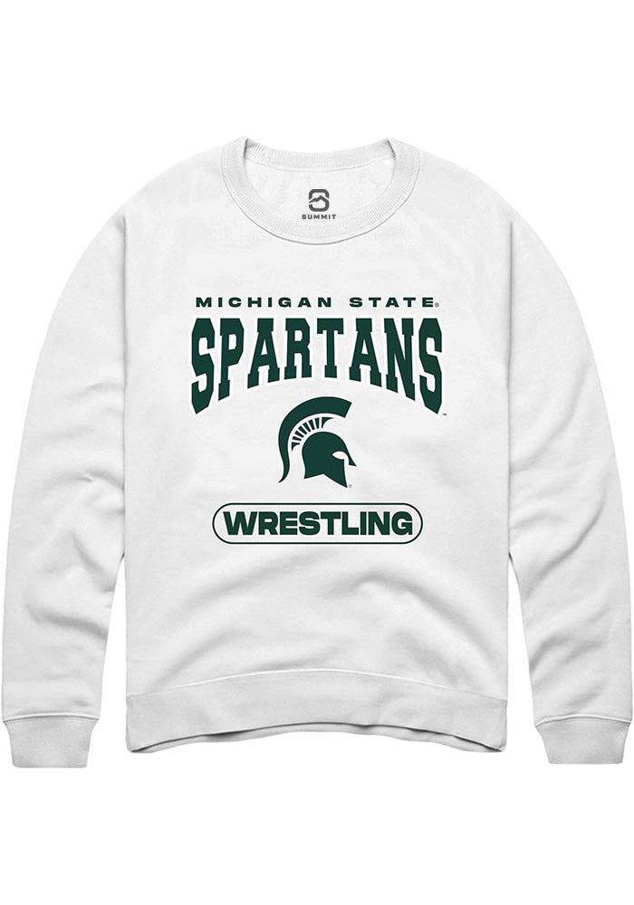 Michigan State Spartans Mens White Wrestling Long Sleeve Crew Sweatshirt