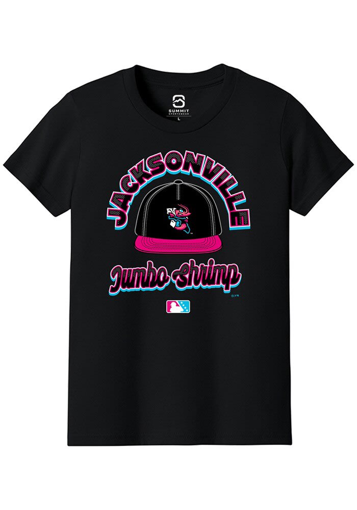 Jacksonville Jumbo Shrimp Youth Black Circle Cap Copa Youth Short Sleeve T-Shirt