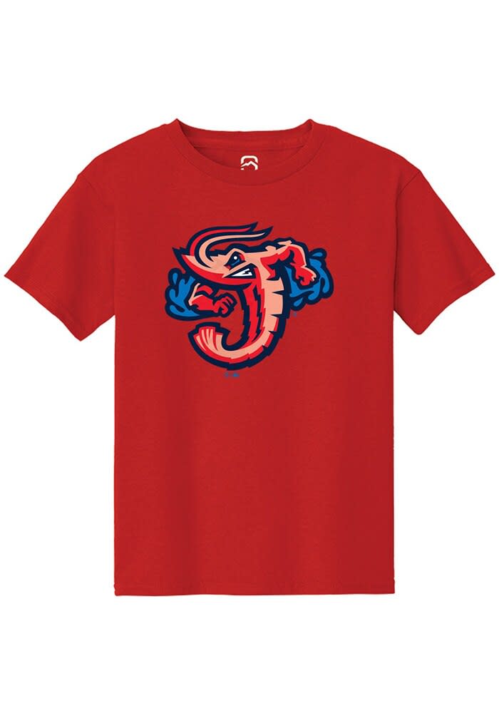 Jacksonville Jumbo Shrimp Youth Red Primary Logo Youth Short Sleeve T-Shirt