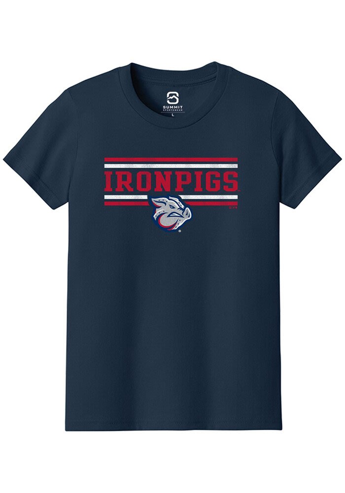 Lehigh Valley Ironpigs Youth Heather Navy Double Bars Youth Short Sleeve T-Shirt