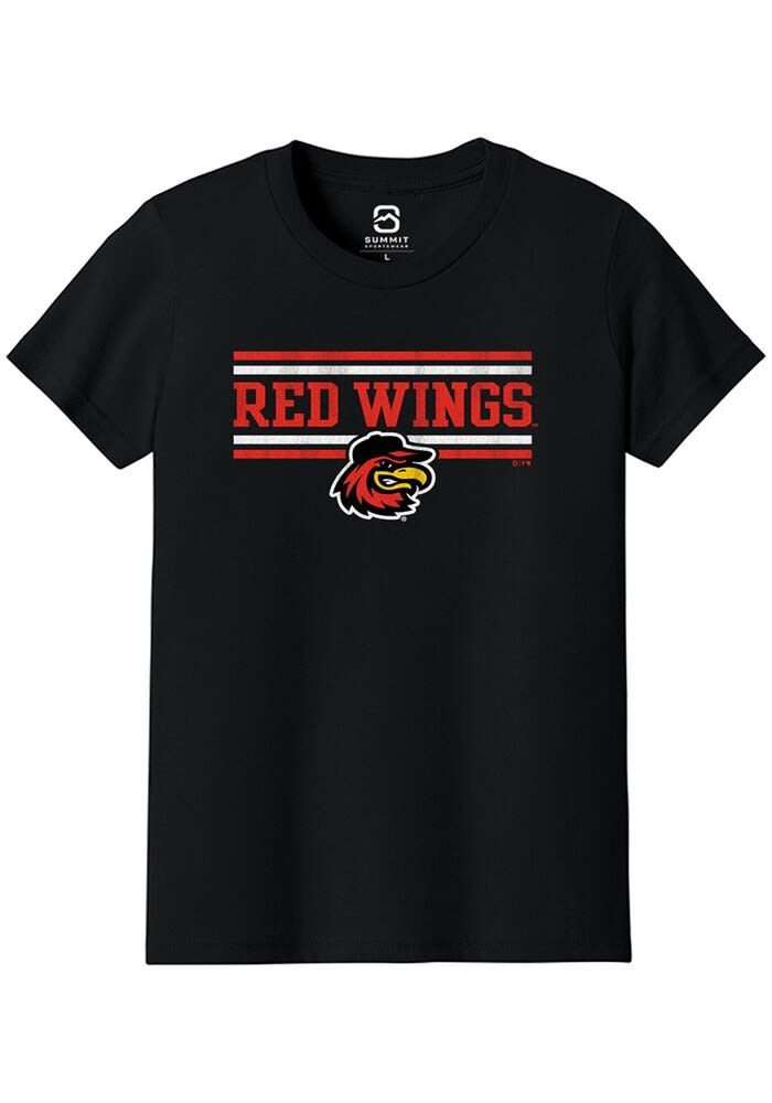 Rochester Red Wings Youth Solid Black Blend Double Bars Youth Short Sleeve T-Shirt