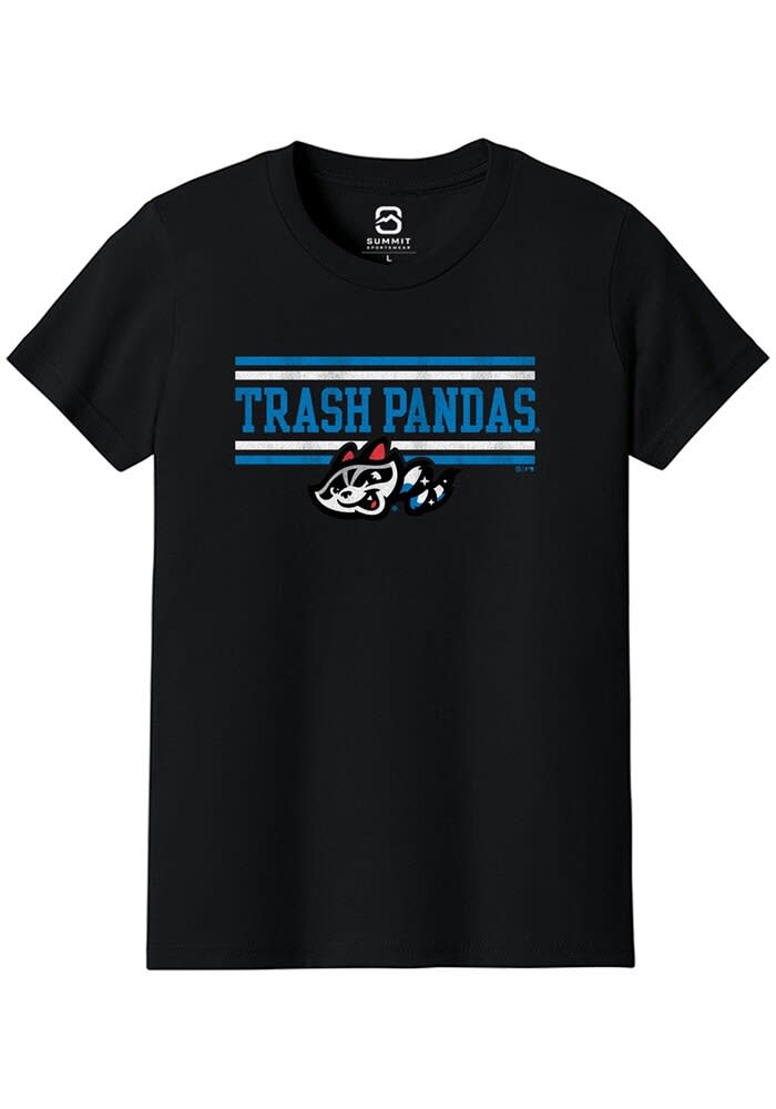 Rocket City Trash Pandas Youth Solid Black Blend Double Bars Youth Short Sleeve T-Shirt