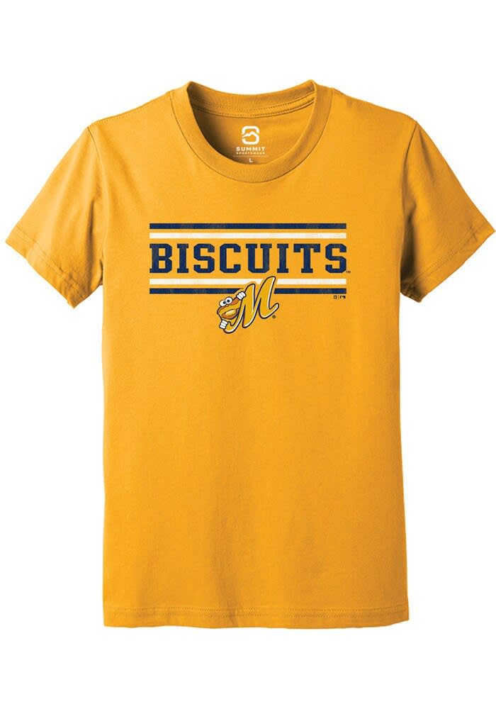 Montgomery Biscuits Youth Gold Double Bars Youth Short Sleeve T-Shirt