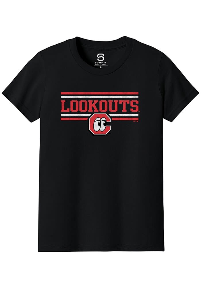 Chattanooga Lookouts Youth Solid Black Blend Double Bars Youth Short Sleeve T-Shirt
