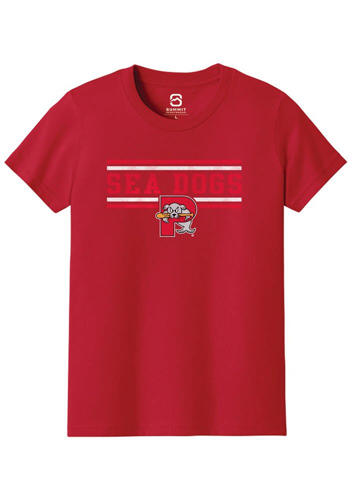 Portland Sea Dogs Youth Heather Red Double Bars Youth Short Sleeve T-Shirt