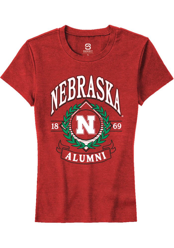 Nebraska Cornhuskers Womens Red Alumni Wreath Short Sleeve T-Shirt