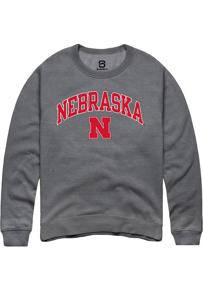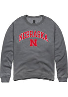 Nebraska Cornhuskers Mens Grey Arch Logo Long Sleeve Crew Sweatshirt