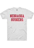 Nebraska Cornhuskers White Straight Block Short Sleeve T Shirt