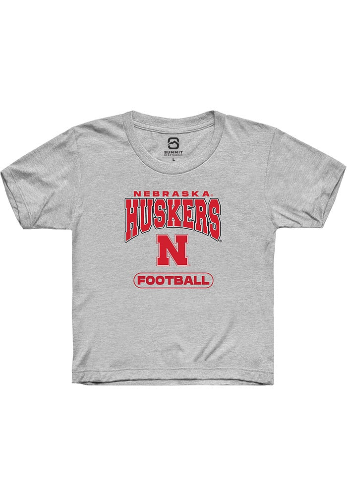 Nebraska Cornhuskers Youth Grey Football Short Sleeve T-Shirt