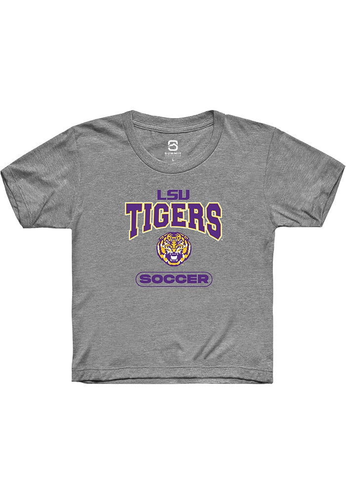 Your future LSU Tigers will be ready for the game with this LSU Tigers Youth Grey Short Sleeve Tee. This Soccer T-Shirt features a digitally printed graphic.