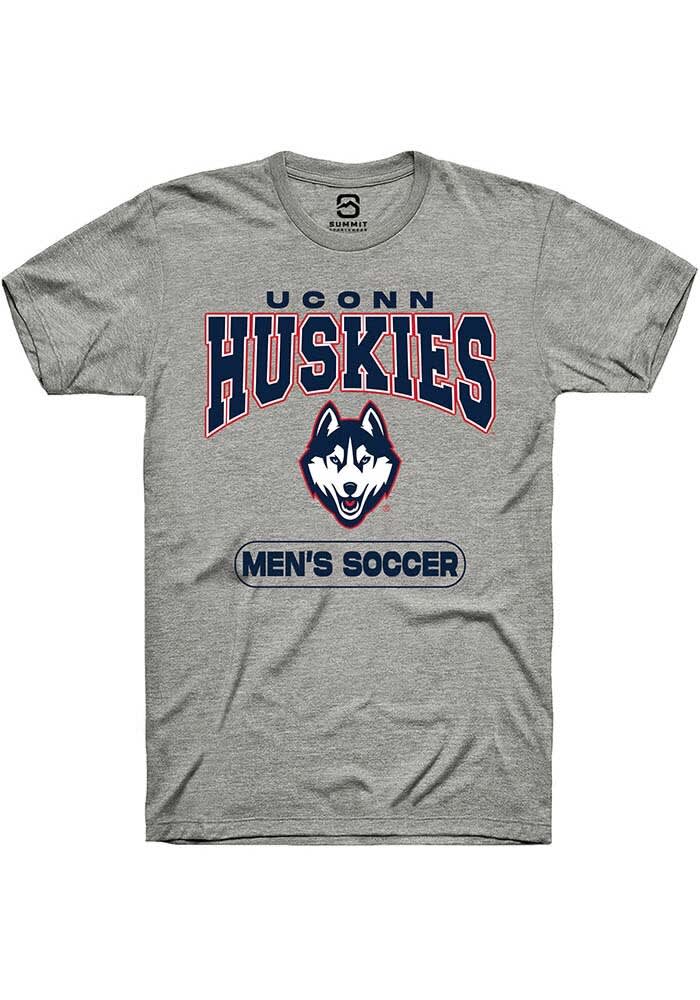 UConn Huskies Unisex Dark Grey Heather Mens Soccer Short Sleeve T-Shirt