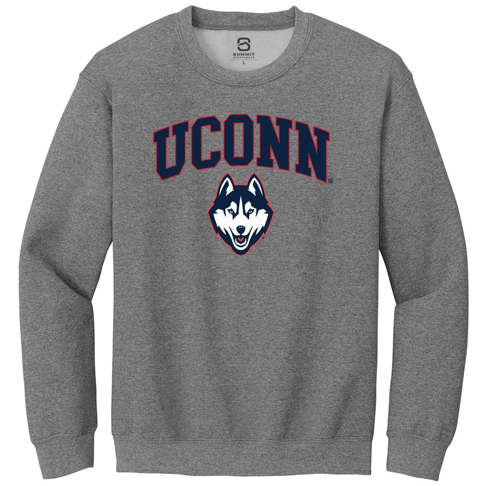 UConn Huskies Unisex Graphite Heather Arch Logo Crew Sweatshirt